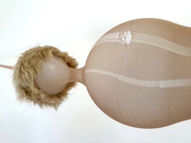 pantyhose, latex balloons, fake fur