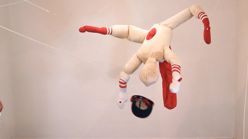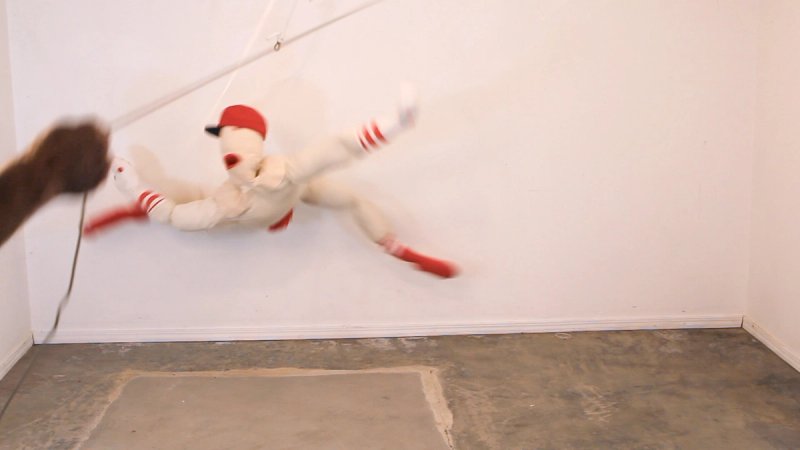 Influenced by the Bobo Doll Experiment, a series of experiments conducted by psychologist Albert Bandura to study how children learn aggression through observation, Dummy is an interactive installation for participants to act out on their emotions. The soft sculpture is made of stuffed canvas, felt, socks and a baseball cap and is attached to ropes and pulleys to allow it to be raised, lowered and flung against the walls and floor. It also has an orifice in its belly area that can be probed and pulled out. The Bobo experiment focused on learned aggressive behavior in children, whereas Dummy lets participants enact their current attitudes and feelings on the doll. Some participants do get aggressive and slam it around, but it also creates an empathetic response in some to care for it, some even running to its aid as someone else is being hurtful.​​​​‌‍​‍​‍‌‍‌​‍‌‍‍‌‌‍‌‌‍‍‌‌‍‍​‍​‍​‍‍​‍​‍‌​‌‍​‌‌‍‍‌‍‍‌‌‌​‌‍‌​‍‍‌‍‍‌‌‍​‍​‍​‍​​‍​‍‌‍‍​‌​‍‌‍‌‌‌‍‌‍​‍​‍​‍‍​‍​‍‌‍‍​‌‌​‌‌​‌​​‌​​‍‍​‍​‍‌‍​‌‌‌‌‌​‌‍‍​‌‍‌‌‌​‍​‍‌‌‌​‌‍‍​‌‍‍‌‌‍‌‌​‍‌‌​​‌‍‌​‍‌‌​‌‍‌‍‌‍‌‍​‌‍‍‌‌‍​‍‍‌​‌‍​‌‌‍‍‌‍‍‌‌‌​‌‍‌​‍‍‌​‌‌​‌‌‌‌‍‌​‌‍‍‌‌‍​‍‌‍‍‌‌‍‍‌‌​‌‍‌‌‌‍‍‌‌​​‍‌‍‌‌‌‍‌​‌‍‍‌‌‌​​‍‌‍‌‌‍‌‍‌​‌‍‌‌​‌‌​​‌​‍‌‍‌‌‌​‌‍‌‌‌‍‍‌‌​‌‍​‌‌‌​‌‍‍‌‌‍‌‍‍​‍‌‍‍‌‌‍‌​​‌‌​‌​‌‌‌​‌‍‌‌‌​‌​‌​​‌‌​‌​‍‌‍​‌‍​‌​‌‌‌​‍​​‍‌‌‍‍‌‌​‌‌‍​‍‌​‌​‌‍​‌‌‌‌‌​‌​​‌‌​‌​‌‌‍​​‍‌‌​‌‍‌‌​​‌‍‌‌​‌‌‌‌‍‌​‍‌‍‍​‍‌​​‌‍​‌‌‌​‌‍‍​​‌‌‍​‌‍‌‍‍‌‌​‌‍‌‌‌‍‍‌‌​‌​​‍‌‍​‌‍‌‍​‌‍‍‌​​‍‌‌​‌‌‌​​‍‌‌‌‍‍‌‍‌‌‌‍‌​‍‌‌​​‌​‌​​‍‌‌​​‌​‌​​‍‌‌​​‍​​‍​‍‌‌‍​‍​​​‌‍‌​​‌‍​‍​​‌​​​‌‍​‌‌‍​‌​​​​‌​​‍‌‌​​‍​​‍​‍‌‌​‌‌‌​‌​​‍‍‌‍​‌‍‌‍‍‌‌​‌‍‌‌‌‍‍‌‌​​‍‌‌​‌‌‌​​‍‌‌‌‍‍‌‍‌‌‌‍‌​‍‌‌​​‌​‌​​‍‌‌​​‌​‌​​‍‌‌​​‍​​‍‌‍​‌‍​‌​​​‌‍‌‌​‌​​‌​‌‍​‌​‍​​​‍​‍​‌‍‌‌​‌‌​‍‌‌​​‍​​‍​‍‌‌​‌‌‌​‌​​‍‍‌‍​‌‍‍​‌‍‍‌‌‍​‌‍‌​‌​‍‌‍‌‌‌‍‍​‍‌‌​‌‌‌​​‍‌‌‌‍‍‌‍‌‌‌‍‌​‍‌‌​​‌​‌​​‍‌‌​​‌​‌​​‍‌‌​​‍​​‍​‌‌‍‌‌​​‌​‍‌​‌​​​‌​‍‌‌‍​‌‍‌‍​​‌‍‌​‌‍​‌​‍‌‌​​‍​​‍​‍‌‌​‌‌‌​‌​​‍‍‌‌​‌‍‌‌‌‍​‌‌​​‌‍​‍‌‍​‌‌​‌‍‌‌‌‌‌‌‌​‍‌‍​​‌‌‍‍​‌‌​‌‌​‌​​‌​​‍‌‌​​‌​​‌​‍‌‌​​‍‌​‌‍​‍‌‌​​‍‌​‌‍‌‍​‌‌‌‌‌​‌‍‍​‌‍‌‌‌​‍​‍‌‌‌​‌‍‍​‌‍‍‌‌‍‌‌​‍‌‌​​‌‍‌​‍‌‌​‌‍‌‍‌‍‌‍​‌‍‍‌‌‍​‍‍‌​‌‍​‌‌‍‍‌‍‍‌‌‌​‌‍‌​‍‍‌​‌‌​‌‌‌‌‍‌​‌‍‍‌‌‍​‍‌‍‌‍‍‌‌‍‌​​‌‌​‌​‌‌‌​‌‍‌‌‌​‌​‌​​‌‌​‌​‍‌‍​‌‍​‌​‌‌‌​‍​​‍‌‌‍‍‌‌​‌‌‍​‍‌​‌​‌‍​‌‌‌‌‌​‌​​‌‌​‌​‌‌‍​​‍‌‍‌‌​‌‍‌‌​​‌‍‌‌​‌‌‌‌‍‌​‍‌‍‍​‍‌‍‌​​‌‍​‌‌‌​‌‍‍​​‌‌‍​‌‍‌‍‍‌‌​‌‍‌‌‌‍‍‌‌​‌​​‍‌‍​‌‍‌‍​‌‍‍‌​​‍‌‌​‌‌‌​​‍‌‌‌‍‍‌‍‌‌‌‍‌​‍‌‌​​‌​‌​​‍‌‌​​‌​‌​​‍‌‌​​‍​​‍​‍‌‌‍​‍​​​‌‍‌​​‌‍​‍​​‌​​​‌‍​‌‌‍​‌​​​​‌​​‍‌‌​​‍​​‍​‍‌‌​‌‌‌​‌​​‍‍‌‍​‌‍‌‍‍‌‌​‌‍‌‌‌‍‍‌‌​​‍‌‌​‌‌‌​​‍‌‌‌‍‍‌‍‌‌‌‍‌​‍‌‌​​‌​‌​​‍‌‌​​‌​‌​​‍‌‌​​‍​​‍‌‍​‌‍​‌​​​‌‍‌‌​‌​​‌​‌‍​‌​‍​​​‍​‍​‌‍‌‌​‌‌​‍‌‌​​‍​​‍​‍‌‌​‌‌‌​‌​​‍‍‌‍​‌‍‍​‌‍‍‌‌‍​‌‍‌​‌​‍‌‍‌‌‌‍‍​‍‌‌​‌‌‌​​‍‌‌‌‍‍‌‍‌‌‌‍‌​‍‌‌​​‌​‌​​‍‌‌​​‌​‌​​‍‌‌​​‍​​‍​‌‌‍‌‌​​‌​‍‌​‌​​​‌​‍‌‌‍​‌‍‌‍​​‌‍‌​‌‍​‌​‍‌‌​​‍​​‍​‍‌‌​‌‌‌​‌​​‍‍‌‌​‌‍‌‌‌‍​‌‌​​‍‌‍‌​​‌‍‌‌‌​‍‌​‌​​‌‍‌‌‌‍​‌